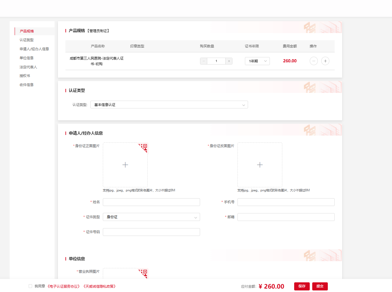 法人证书订单注册提交网址:https://www.itruscloud.com/certsaas_cloud_portal/#/createOrder?productCode=CERT114657