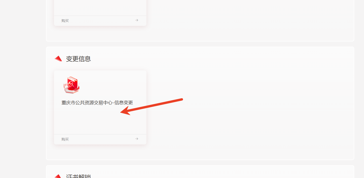 UKEY证书信息变更(单位名称、公司税号、个人证书名称变更)办理提交网址:https://www.itruscloud.com/certsaas_cloud_portal/#/home/projectDetail/zqsggzy,选择【变更信息】入口进入,使用经办人手机号短信验证登录平台,点击【工作台】—【云采盾】—【我的证书】,点击原证书下方的【变更】按钮提交订单;